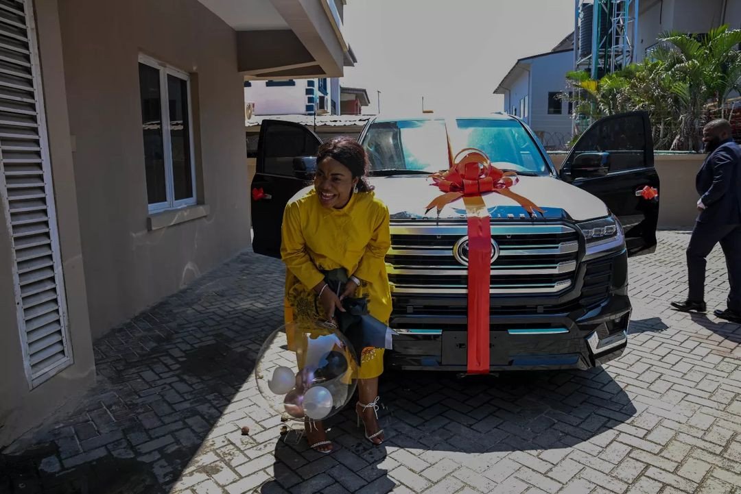 Fresh from their talk-of-the-town wedding, Hubby, Pastor Blessed Uzochikwa splashes big as he celebrates his wife, Mercy Chinwo on her 31st birthday with a brand new SUV.