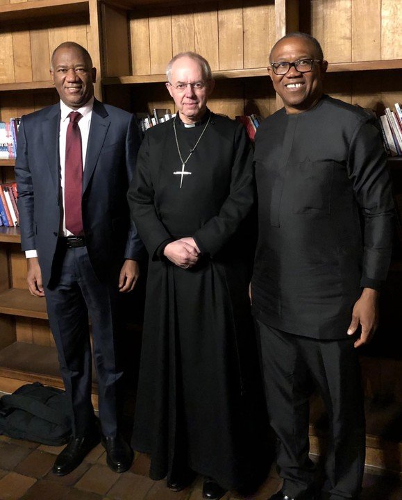 The presidential candidate of the Labour Party, Peter Obi and his running mate, Datti Baba were received by Justin Welby, the Archbishop of Canterbury.