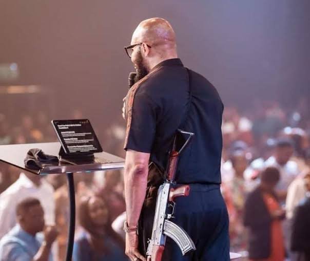 House on the Rock Abuja Pastor Uche Aigbe has apologized through the church platform for carrying an AK-47 to the altar in order to buttress his Sunday sermon.