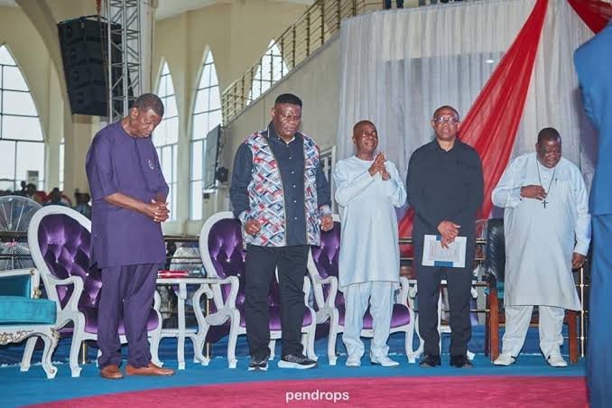 The presidential candidate of the Labour Party, Peter Obi met with the general overseer of RCCG, pastor E.A Adeboye and Bishop Oyedepo of living faith and other pastors at the PFN summit in Bayelsa.