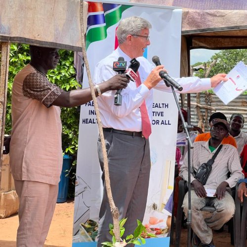 Elder S. Gifford Nielsen, General Authority Seventy and president of the Church’s Africa West Area, participated in three ribbon-cutting ceremonies with first lady Fatoumata Bah Barrow in Bonsa, Giboro Gidda and Kubariko villages on Aug. 18.