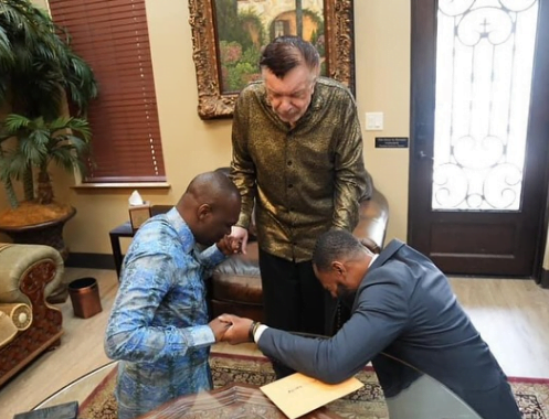 Dr Mike prayed and blessed Apostle Selman alongside Pastor Nathaniel Bassey after their USA conference.