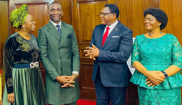 “We appreciate the Malawian president, His Excellency Dr. Lazarus McCarthy Chakwera and his amiable wife Her Excellency Mrs. Monica Chakwera (First Lady of Republic of Malawi), and their team for the warmth reception we received upon our arrival to the country and during our meeting at the Government House with the presidential cabinet and we believe God for the completion of His project in the lives of His people.