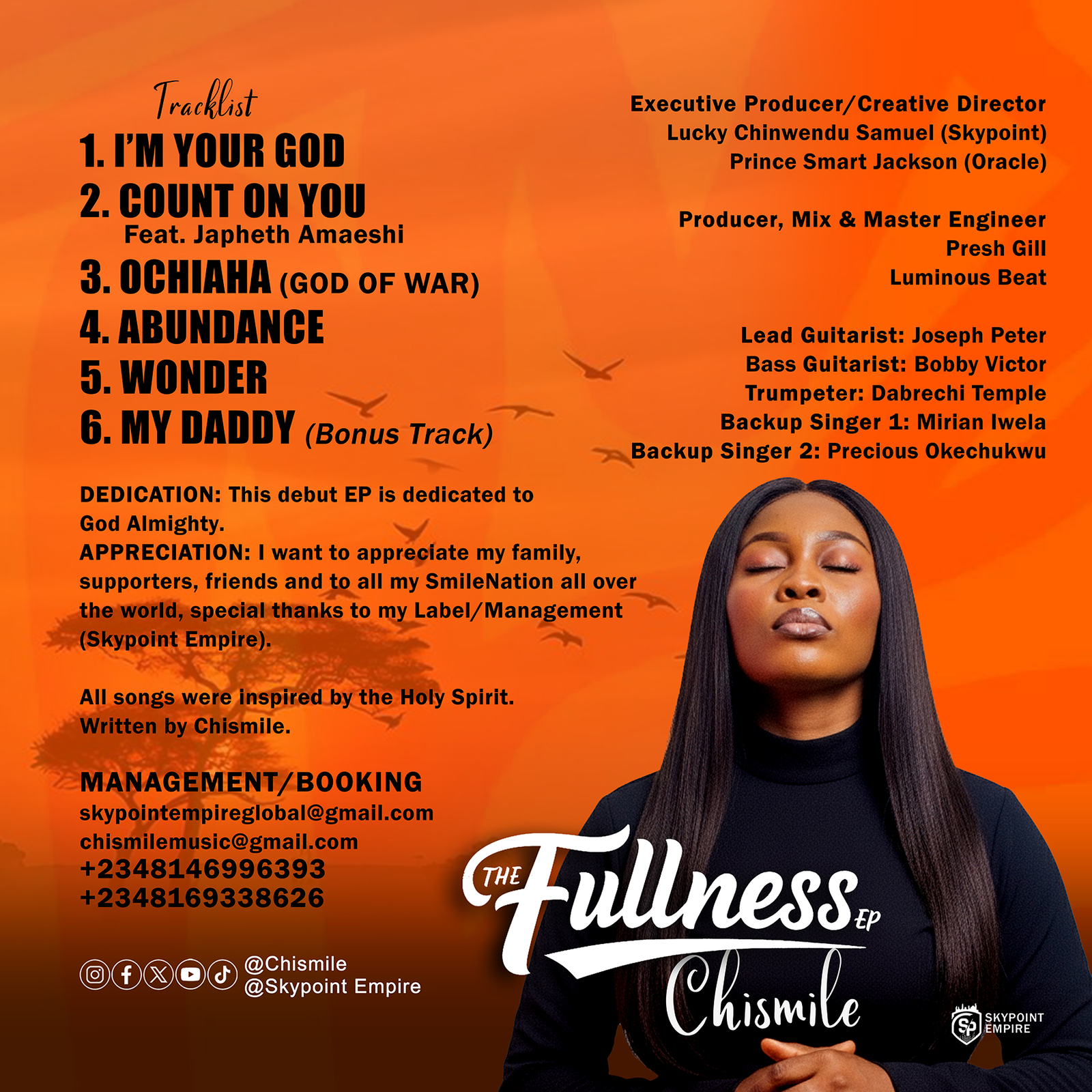 Produced under Skypoint Empire, the EP features rich instrumentation, anointed lyrics, and Chismile’s signature energetic vocals. Each track was birthed in the place of prayer, carrying a unique message designed to edify the body of Christ and inspire believers worldwide.