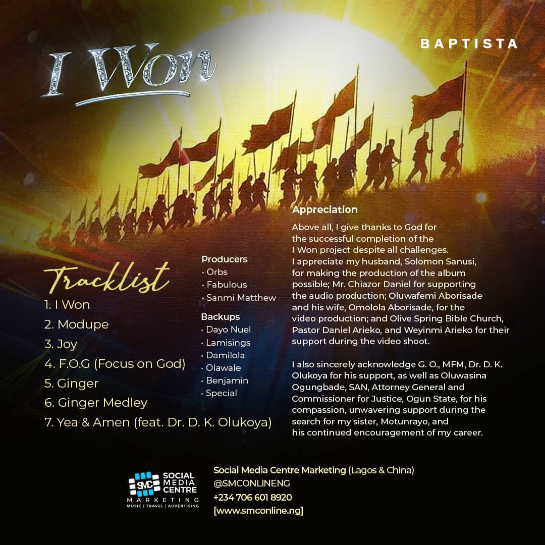 Gospel singer Baptista releases her long-awaited album, “I Won”, in celebration of her birthday — a powerful testimony of faith, resilience, and divine victory.